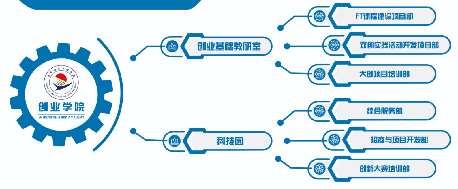 创业学院于2021年正式成立,是齐齐哈尔工程学院响应党和国家“大众创业、万众创新”政策号召,贯彻创新驱动发展战略而设立的创新创业教育教学和创新实践应用的组织,以“持创新之心,育创业之才”为使命。其主要职能包括开展创新创业研究,普及创新创业知识;开展创新创业实践,服务创业企业孵化;搭建创新创业平台,打造创新创业生态圈。