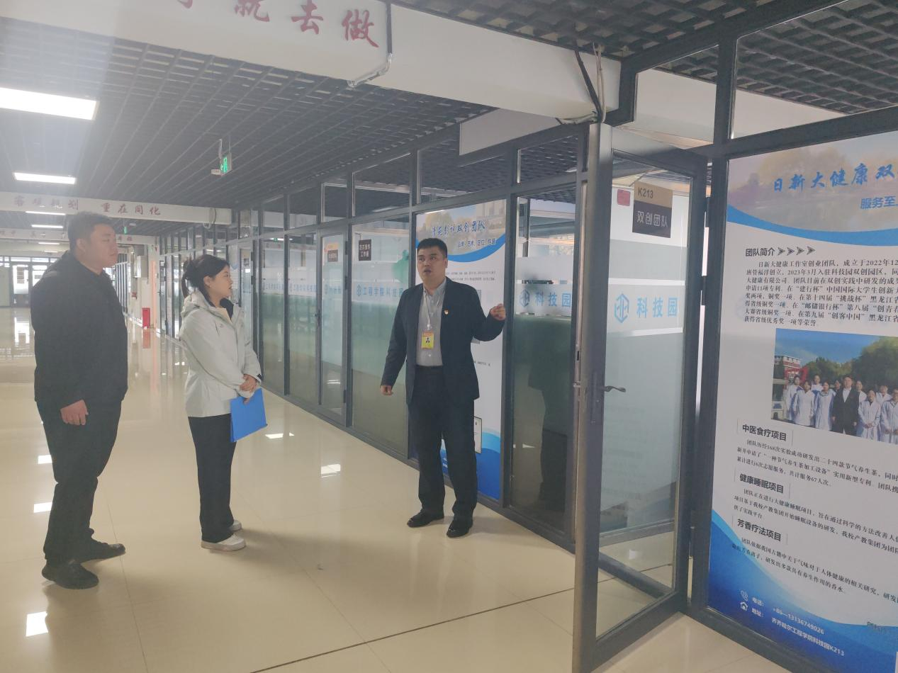 4月1日上午,富拉尔基区发改工信局创新创业服务中心主任方洪亮、龙沙区科技局吕增越、闫梦吉等一行4人来校,对“智谷”科技园进行调研指导。此次调研聚焦于园区管理和项目孵化等方面,科技园教师孙文热情接待,并陪同调研组参观调研。