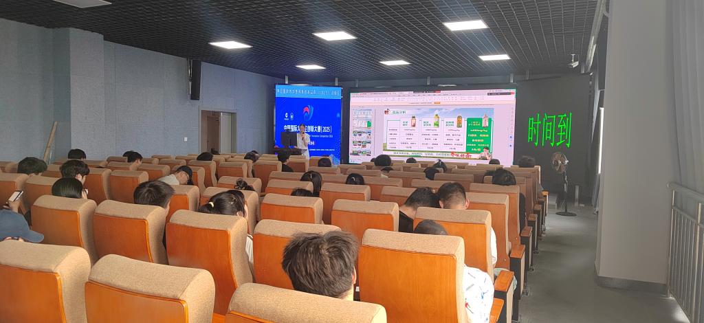 活动中,王畅处长以“大赛引领下的双创课程建设”为主题,在学院报告厅为师生带来精彩分享。他紧密结合中国国际大学生创新大赛的赛制要求与优秀案例,深入剖析了双创课程设计的核心要点与改革方向,强调课程内容应紧密对接大赛所倡导的创新思维、实践能力与团队协作精神,实现“以赛促教、以赛促学、赛课融通”。现场气氛热烈,座无虚席,师生们认真聆听,积极互动。