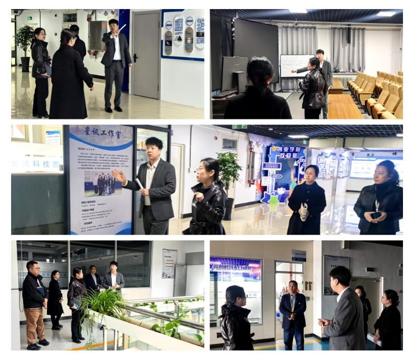 创业学院院长单大海陪同参观,并详细介绍了学院的基础设施、入驻企业情况及学生创业项目开展情况。