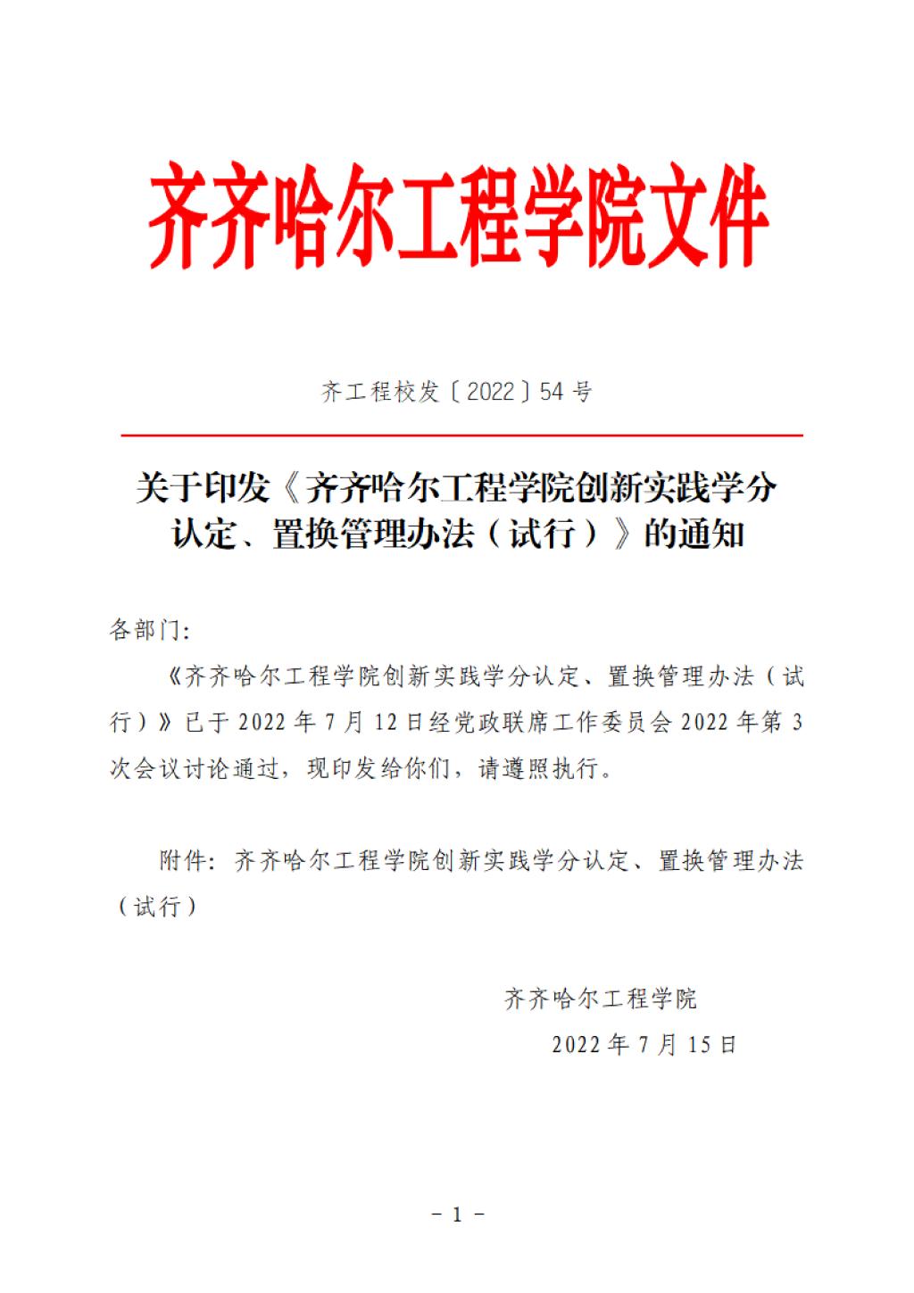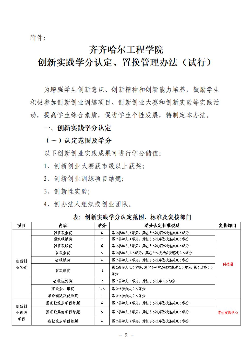 【校级政策】关于印发《齐齐哈尔工程学院创新实践学分认定、置换管理办法(试行)》的通知.pdf